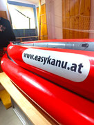 easykanu verkauft nicht nur neutrale GUMOTEX-Boote sondern auch solche mit dem Schriftzug "www.easykanu.at" auf den Seitenwänden. Dieser weiße Balken ist ca. 60 cm lang, die Schrift ist schwarz. Sie sehen diesen hier am Musterfoto bzw. im Original auf unseren Miet- und Vorführbooten. Möchten Sie Ihr Wunschboot mit easykanu-Aufschrift & VIP-Vorteilen kaufen so teilen Sie uns dies mit und bestellen Sie auch gleich alles Zubehör, und Bekleidung. Wir rufen Sie umgehend an besprechen die Details mit Ihnen und sagen Ihnen den ungefähren Liefertermin (in der Regel 1 Woche).